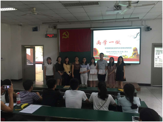 为认真贯彻执行党中央《关于在全体党员中开展“学党章党规、学系列讲话,做合格党员”学习教育方案》,5月31日,资源环境学院学生党支部书记王燕老师为全体党员作“如何开展基层党支部工作”专题讲座。学院党总支书记李蕖、全体辅导员参与此次会议。