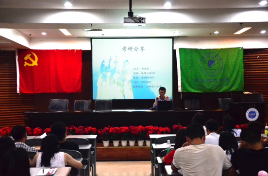 分享经验,共同进步。学生党支部邀请在考研、考公务员、出国留学方面有经验的毕业生党员上台分享。为有意考研的同学提供建议,切实把“服务”落到实处。