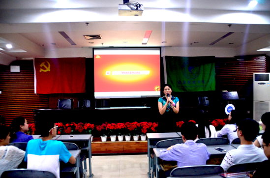 会议伊始,通过播放一段支部展示片,回顾一年来学生党支部所做的工作,全体党员和积极分子进一步了解支部的日常工作。随后,组织进行优秀党员评选活动,由优秀党员候选人上台发言,地遥测学生支部党员何彬彬表示:“对于过去的大学四年,自己感到很满足,希望党组织可以考虑我的申请”。