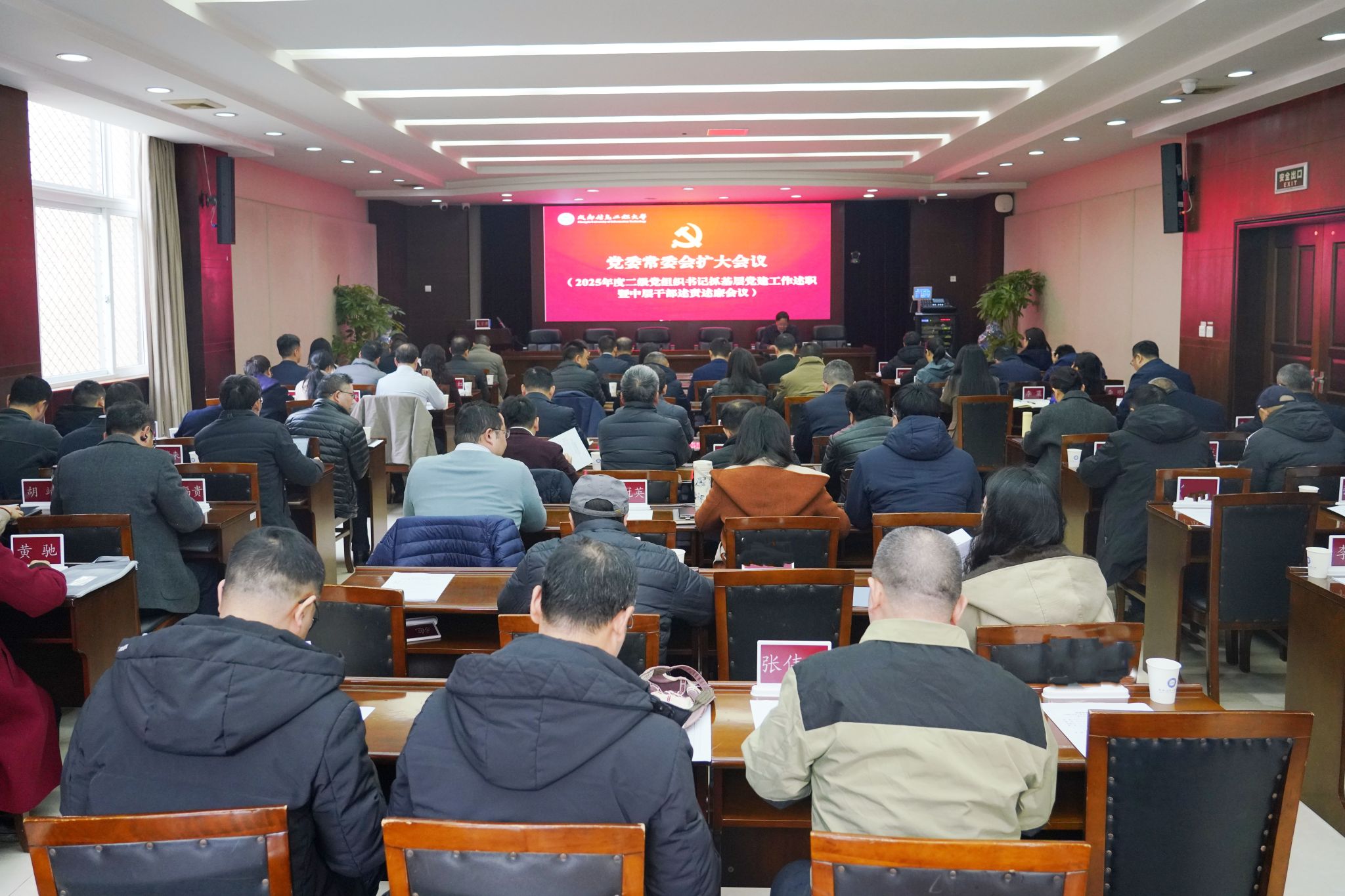 1月13日下午,学校在航空港校区第一会议室召开党委常委会扩大会议,专题听取2025年度二级党组织书记抓基层党建工作述职暨中层干部述责述廉。全体校领导出席会议,学校党建工作领导小组成员单位主要负责同志、各二级党组织书记、各单位主要负责人以及基层一线党员代表参加会议。会议由校党委书记沈火明主持。